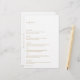 Elégant menu faux mariage or avec une disposition simple et minimale. L'alignement gauche donne à ce menu mariage classique un élément moderne. Un design minimal qui est génial que vous ayez un mariage décontracté ou traditionnel / formel.