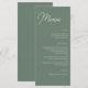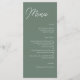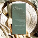 Offrez-vous une simplicité sophistiquée, où le minimalisme moderne rencontre l'élégance matrimoniale. Parfait pour votre réception de mariage, ce menu mêle une palette verte à la sauge unique avec un script simple et élégant. Inspirez vos invités avec chaque détail, de votre histoire d'amour à votre dernier parcours. Laissez votre fête mariage être un festin inoubliable pour les yeux aussi!