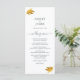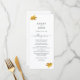 Elégant menu minimaliste mariage avec un script chic off-black et une touche design de feuillage feuille or sur un arrière - plan blanc. Ajoutez simplement les détails de votre mariage. Conçu exclusivement pour vous par Happy Dolphin Studio. Si vous avez besoin d'aide ou de produits correspondants, veuillez nous contacter à happydolphinstudio@outlook.com . Nous sommes heureux de vous aider à faire de votre mariage la plus belle journée!