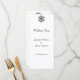 Ces menus de mariage personnalisés comportent un élément damassé noir et blanc d'inspiration vintage à l'avant et à l'arrière.
