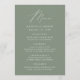 Menu de mariage simple et élégant avec "Menu" affiché dans un script blanc moderne avec un arrière - plan vert sage ou couleur de votre choix. Personnalisez le menu mariage vert sage en ajoutant vos noms, votre date de mariage et vos informations de menu. Conçu pour coordonner avec notre collection de mariages Modern Elegance.