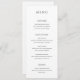 Un menu de mariage élégant, au design classique et à la disposition simple. Vos noms et votre date de mariage sont affichés en évidence dans une grande police de caractères serif traditionnelle au dos. La simplicité de ce design est très appréciable pour un mariage formel.