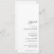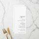 Menu mariage simple aligné en bas : Ce menu mariage simple et moderne dispose d'un arrière - plan blanc propre avec un élégant texte noir, parfaitement aligné en bas pour laisser de l'espace pour les étiquettes de nom coupé en haut. Son design minimaliste et sa police serif élégante offrent un look sophistiqué mais sobre, ce qui en fait un choix idéal pour une expérience gastronomique raffinée et organisée à votre réception de mariage. Un ajout élégant et pratique pour toute célébration moderne.