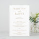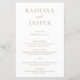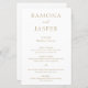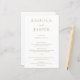 Elégant menu faux mariage or avec un design simple et minimal. Une disposition classique avec vos noms en gros caractères pour une touche moderne à ce style traditionnel. Un menu mariage qui conviendra parfaitement à un mariage formel.