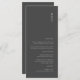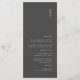 Il s'agit d'un menu Mariage moderne couleur gris foncé, qui ajoutera une touche d'élégance à votre décor de soirée de mariage, et les tons rouille et désert seront très appréciés pour les Mariages de automne. Tout le texte est modifiable, il suffit de cliquer sur "Personnaliser ce modèle". Des articles correspondants, y compris la suite de Faire-part de mariage, sont également disponibles.