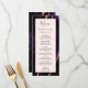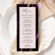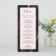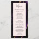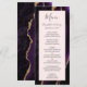 Ce menu mariage moderne et élégant présente un arrière - plan d'agate violet d'aquarelle orné d'une fausse parties scintillant dorée. Le texte apparaît dans une élégante écriture manuscrite gris fusain et des polices de cuivre sur un rectangle rose vif. La conception de l'agate est répétée à l'envers.