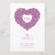 Mauve violette, menu du dîner vert et blanc mariage. Modifiez ce menu de 4 plats avec votre propre libellé d'option de repas. Fleurs de tulipe à main simples mais modernes et feuilles en forme de coeur avec monogramme au design central. © Dessin botanique à la main original et design par Sarah Trett pour www.mylittleedenweddings.com exclusivement sur zazzle.