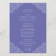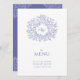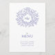 menu du dîner mariage violet bleu et blanc. Modifiez ce menu de 4 plats avec votre propre libellé d'option de repas. Feuilles et monogrammes simples mais modernes dessinés à la main. © Dessin botanique à la main original et design par Sarah Trett pour www.mylittleedenweddings.com exclusivement sur zazzle.