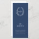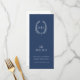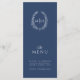 Menu du dîner bleu marine foncé et blanc mariage. Modifiez ce menu de 4 plats avec votre propre libellé d'option de repas. Feuilles ovales et monogrammes modernes mais classiques dessinés à la main. © Dessin à main ovale original par Sarah Trett pour www.mylittleedenweddings.com exclusivement sur zazzle.