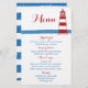 Menu Mariage Nautical Red Lighthouse Blue Stripes