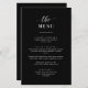 Menu Mariage noir et blanc élégant personnalisé