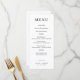 Menu de Mariage élégant, moderne et chic noir et blanc avec script blanc. Personnalisez-le avec vos informations. Affichez la collection correspondante.