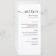 Vos invités mariages adoreront cette carte de menu noir et blanc élégante. Doté d'une disposition contemporaine simple et d'une calligraphie élégante, il est parfait pour votre journée spéciale. Facile à modifier, il vous permet de personnaliser votre réception de mariage avec facilité.