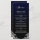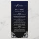 Un élégant menu en dentelle blanche noir et bleu mariage.