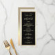Élégant, moderne, simple et minimaliste menu mariage en marbre noir et blanc avec script or moderne et feuille d'or métallique côté arrière.