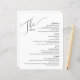 Ces menus de feuilles de papier de 8,5 po x 11 po, légers et aérés, sont dotés de lettrage noir sur un arrière - plan blanc avec le message "The Menu", avec des espaces réservés pour 2 entrées, 3 entrées, 2 côtés et 2 desserts.