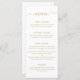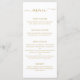 Menu mariage moderne avec un design simple avec le titre, "menu" dans un élégant script manuscrit avec des swashes et vos descriptions de cours dans une police sans serif en faux or, sur un arrière - plan blanc. Un design simple et épuré, parfait pour le minimaliste.