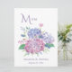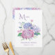 Pastel Hydrangeas Mariage Menu conçu avec des bouquets floraux d'hydrangeas lumineux sur un arrière - plan blanc. Le texte avant comprend : Menu, Noms de la mariée et de la mariée et Date du Mariage. Le texte inverse comprend : Menu, Appetizer, Entre et Dessert Selections. Pour personnaliser, insérez simplement vos détails dans notre modèle facile, en remplaçant l'échantillon.