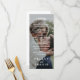 Menu minimaliste mariage photo avec un design simple avec le mot "menu" dans un élégant script manuscrit avec swashes avec vos noms en blanc sur votre photo préférée. Ces menus mariage modernes et chic se marient bien avec n'importe quel style de mariage.