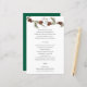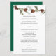 Un menu élégant à la réception de mariage fleurie pour un mariage d'hiver est préparé avec du pin à roses blanches. Encore accentué avec des baies subtiles et des cônes de pin.