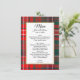 Carte colorée de la réception de mariage Highland faite dans le moderne motif plaid Wilson rouge, bleu, vert et blanc. Une zone de texte blanc bordée d'or, au milieu, a du texte noir prêt à être personnalisé. Produits correspondants disponibles.