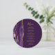 Le bord gauche de cet élégant menu mariage moderne rond présente une bordure d'aquarelle violette ornée d'une parties scintillant en faux or. Le texte personnalisable combine écriture manuscrite couleur or et polices de cuivre sur un riche arrière - plan de prune. L'envers est assorti d'une agate violette et dorée.