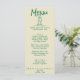 Un menu coloré rétro moderne et chaleureux mariage rouge vif pour le dîner. Ce qui présente un design modèle chic de boho vintage vert arrière - plan et vert foncé typographie et menu écrit à la main en vert. Et des lunettes de champagne dessinées à la main. Avec du monogramme dans le dos. Parfait et assorti à toute la suite.