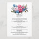 Carte de menu à fleurs rose et bleu mariage. Idéal pour un thème ou un mariage de jardin.