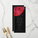 Cette carte de menu mariage officielle présente une superbe photo d'une seule rose rouge contre un arrière - plan noir dramatique. Votre texte facilement customisé est gris argenté. Le dos de la carte est noir. Cette carte de menu correspond à l'Single Red Rose Monogram Wedding Invitations dans mon magasin, fait une carte de menu élégante pour toute occasion.