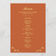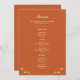 Ajoutez une touche d'élégance à vos festivités mariages avec ce menu mariage en terre cuite et or. L'avant présente les éléments du menu. Le verso du menu porte le nom du couple mariage et la date du mariage. Design Rose en terre cuite. Utilisez le modèle pour personnaliser.