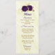 belles fleurs royales violettes et menu de mariage élégant feuille or.