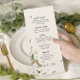 Étendez votre expérience de repas mariage grâce au menu Rustic Cotton Greenery Mariage. Dotée d'un design intemporel avec d'élégantes aquarelles représentant des fleurs de coton et une végétation luxuriante, cette carte de menu ajoute une touche botanique et rustique à vos tables. Parfait pour les mariages de campagne, de plein air ou de jardin, ce menu affiche magnifiquement vos options de repas soigneusement organisées tout en rehaussant votre décor général. Entièrement personnalisable, vous pouvez personnaliser le texte pour qu'il corresponde à vos sélections de thème et de menu mariage. Associez-le à des articles assortis de la collection Rustic Cotton Greenery pour un look cohésif et sophistiqué tout au long de votre journée spéciale.