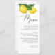 Apportez une touche fraîche et élégante à votre réception avec cette carte de menu mariage citronnier, magnifiquement illustrée avec des agrumes aquarelles et de la verdure. Conçu pour s'associer à une suite de mariages d'agrumes rustiques, ce menu allie charme naturel et raffinement intemporel. Le texte serif moderne associé à un script romantique crée un look raffiné mais accessible, parfait pour tout thème mariage. Idéal pour les couples qui souhaitent organiser un mariage d'été dans un jardin, une réception de vignobles rustiques, une cérémonie en bord de mer ou un événement inspiré de la côte amalfitaine.