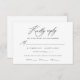 Parfaites pour un mariage moderne, ces cartes RSVP de calligraphie présentent un script élégant et un design minimaliste noir et blanc.