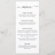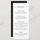 Menu mariage moderne avec un design simple avec le titre, "menu" dans un élégant script manuscrit avec des swashes et vos descriptions de cours dans une police sans serif noire, sur un arrière - plan blanc. Le dos est noir et solide. Un design simple et épuré, parfait pour le minimaliste.