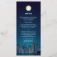Il s'agit d'une carte de menu sophistiquée pour ceux qui ont un événement spécial, une cérémonie privée ou un événement dans une ville urbaine. Il dispose d'une ligne d'horizon de la ville pour une nuit étoilée avec la lune se levant au-dessus d'un menu customisé. Les noms du couple sont au verso avec la date de l'événement en dessous. Disponible avec les produits correspondants. com com com.