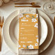 Servez vos plats avec style grâce à cette carte super de mariage à fleurs de moutarde. Avec sa typographie rétro, ses accents chauds de moutarde et ses délicates illustrations florales, ce design ajoute une touche les années 70 boho amusante à vos tables d'accueil. Parfaites pour les mariages rustiques, vintages ou d'inspiration hippie, ces cartes de menu mettent en valeur non seulement vos choix de repas, mais aussi l'esthétique générale de votre paysage de table mariage.