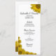 Customisez le joli menu Mariage Sunflower Edge avec les détails du repas que vous pourrez servir à votre dîner de répétition, soirée jardin fiançailles, déjeuner de douche nuptiale ou réception de mariage en ajoutant la salade ou le premier plat, entrée ou deuxième plat et dessert ou troisième plat. Personnalisez-le avec les noms de la mariée et du marié, l'emplacement du lieu et la date de l'événement. Cet élégant menu à fleurs mariage est orné de tournesols jaunes ornant les coins d'un arrière - plan blanc.