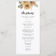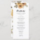 Menu Rustique Mariage Tournesol. Ajoutez un peu de soleil à votre mariage avec ces magnifiques tournesols jaunes aquarelles peints à la main, des marguerites blanches et des feuilles verts sauge et couleur terre cuite. Idéal pour un mariage romantique d'automne rustique ou un mariage d'été en plein air dans un jardin, ces magnifiques menus mariages boho chic vous donneront le ton pour votre journée spéciale. Trouvez des produits de coordination dans Rustic Watercolor Sunflower Wedding Invitations.