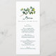 Une carte raffinée de menu mariage avec une délicate branche d'eucalyptus à l'aquarelle en haut, associée à un élégant script vert et des polices serif. La disposition épurée et minimaliste de l'arrière - plan blanc permet de se démarquer des détails du menu et de l'événement, tandis que l'accent botanique apporte une touche fraîche et naturelle. Ce menu est parfait pour les mariages de jardin, les fêtes modernes ou tout événement sur le thème botanique ou vert. Le format vertical s'adapte à merveille à chaque endroit, créant une expérience culinaire sophistiquée pour vos invités.