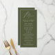 Menu de mariage simple et élégant avec "Menu" affiché dans un script blanc moderne avec un arrière - plan vert olive ou couleur de votre choix. Personnalisez le menu mariage vert olive en y ajoutant vos noms, votre date de mariage et vos informations sur le menu. Conçu pour coordonner avec notre collection de mariages Modern Elegance.