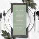 Menu simple Mariage couleur solide clair feuille verte. Cette carte de menu moderne chic est simple classique et élégant avec un arrière - plan de couleur unie et une jolie police de calligraphie de script signature avec queues. Montré dans la nouvelle Colorway. Avec un joli monogramme à l'arrière. Disponible en plusieurs options de couleur, ou n'hésitez pas à modifier les couleurs à partir de l'éditeur (cliquez sur customiser plus loin lors de la personnalisation). Pour en savoir plus, recherchez les collections mariages 2022 de Chic Paperie pour voir toutes les tendances design et couleurs mariages de cette année.