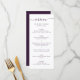 Élégant menu personnalisé de mariage violet avec une police de script moderne. Personnalisez facilement en ligne. Articles assortis disponibles pour compléter ce menu minimaliste mariage violet.