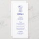 Créez votre mariage de rêve jusqu'au dernier détail grâce à nos menus de mariages fantaisistes. Avec leur simple arrière - plan blanc, ils dégagent une quiétude et un charme, rehaussés d'un ravissant doodle de couverts bleu dessiné à la main. De plus, notre modèle de menu moderne fait de personnaliser vos sélections une brise. Transformez votre repas en une partie mémorable de votre journée spéciale.