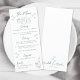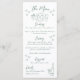 Menu du Mariage blanc et vert Sage inspiré d'Europe. Cette carte mariage enchanteresse présente un design charmant inspiré de l'esthétique italienne, française et européenne. L'illustration d'un lieu dessiné à la main est accrochée au sommet, tandis qu'une bouteille de champagne et un verre au fond sont rehaussés de coeurs épars pour une touche romantique et élégante. Les accents verts à la sauge douce remplacent le bleu d'origine, ajoutant une sensation fraîche et terreuse tout en maintenant le ton fantaisiste mais raffiné. L'avant met en évidence les détails de votre menu dans un mélange de script manuscrit et de polices simples, créant une présentation équilibrée et élégante. Sur le dos, les noms de la mariée et du marié et la date du mariage sont soigneusement affichés, ce qui en fait un joli souvenir pour vos invités. Entièrement personnalisable, la conception vous permet d'adapter le texte et les couleurs à votre style mariage. Idéal pour les réceptions de mariage, les dîners de répétition, les douches nuptiales ou une soirée de fiançailles sophistiquée, cette carte de menu apporte un élément délicieux et personnel à vos événements spéciaux.