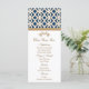 Cliquez sur le bouton customiser pour commencer à customiser cette carte de menu d'inspiration marocaine française élégante et magnifique avec un saphir bleu marine et un design motif géométrique or et des fleurs dorées huées d'or. Cette carte de menu haut de gamme et de luxe est parfaite pour toutes les soirées officielles, exotiques, marocaines, arabes ou aladdin, mariage, baby shower, douche à couple, fiançailles ou fête d'anniversaire. L'arrière peut être personnalisé avec votre nom d'événement. Oeuvre et design © Chrissy H. Studios, LLC. Tous droits réservés.