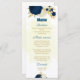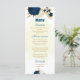 Fleurs bleu marine et blanc romantique avec carte de menu mariage botanique feuille or. Les détails de la parties scintillant sont simulés.