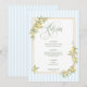Elevate your place settings with this elegant lemon-themed wedding menu, designed to coordinate beautifully with your citrus-inspired suite. Featuring soft blue-and-white stripes, a delicate watercolor lemon-and-greenery border, and graceful script typography, this menu brings a fresh Mediterranean charm to each table while showcasing your meal in refined style. Perfect for coastal, garden, Italian-inspired, and summer weddings, it adds a polished, cohesive detail that enhances your reception décor from the first course to the last.