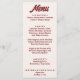 A colorful retro funky modern cream and deep red wedding dinner menu. Which features chic template design of boho vintagecream background and deep red bold typography .Perfect and matching with the whole suite.