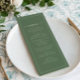 A modern coastal menu featuring a soft green palette and a refined palm tree illustration that brings a relaxed yet elevated touch to your wedding table setting, creating a cohesive look that pairs beautifully with tropical, beach, and destination celebrations.